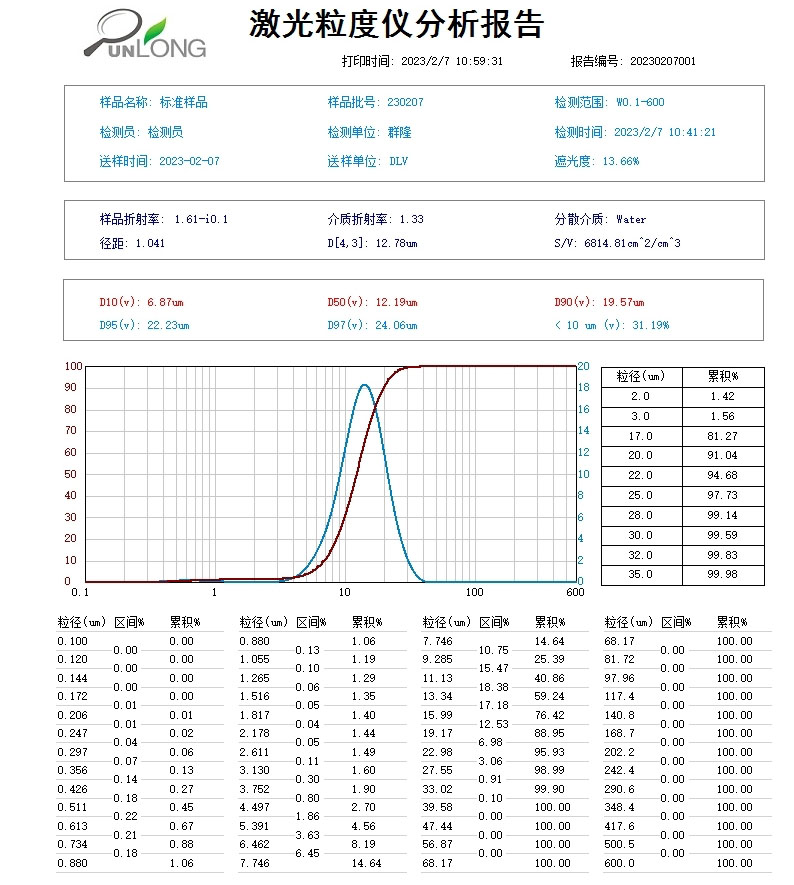 | 統(tǒng)計方式 | 體積分布和數(shù)量分布,以滿足不同行業(yè)對于粒度分布的不同統(tǒng)計方式 |