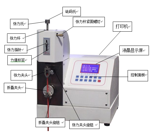 將所配給用戶的砝碼放在張力托上,(小的為4.9N,大的為9.8N)看張力指針是否指在對(duì)應(yīng)刻度上,如有偏差,可用調(diào)節(jié)旋鈕調(diào)節(jié),使指針對(duì)應(yīng)標(biāo)準(zhǔn)刻度線,而后再將鎖緊旋鈕順時(shí)針鎖緊。(調(diào)節(jié)旋鈕鎖緊旋鈕的位置見儀器外觀圖)。