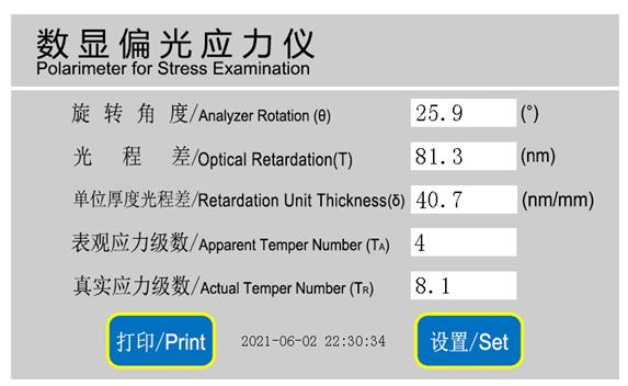 • 五組數據直觀顯示:應用彩色5英寸液晶顯示屏,同時顯示測量角度值、光程差數值、平均厚度光程差(應力值)、表觀應力級數和真實應力級數,滿足不同行業的測量需求。